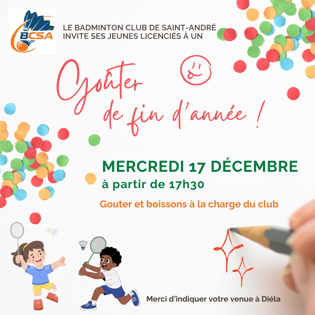 Jeunes licenciés du BCSA, le comité vous attend pour un gouter de Noël pour fêter la fin d'année